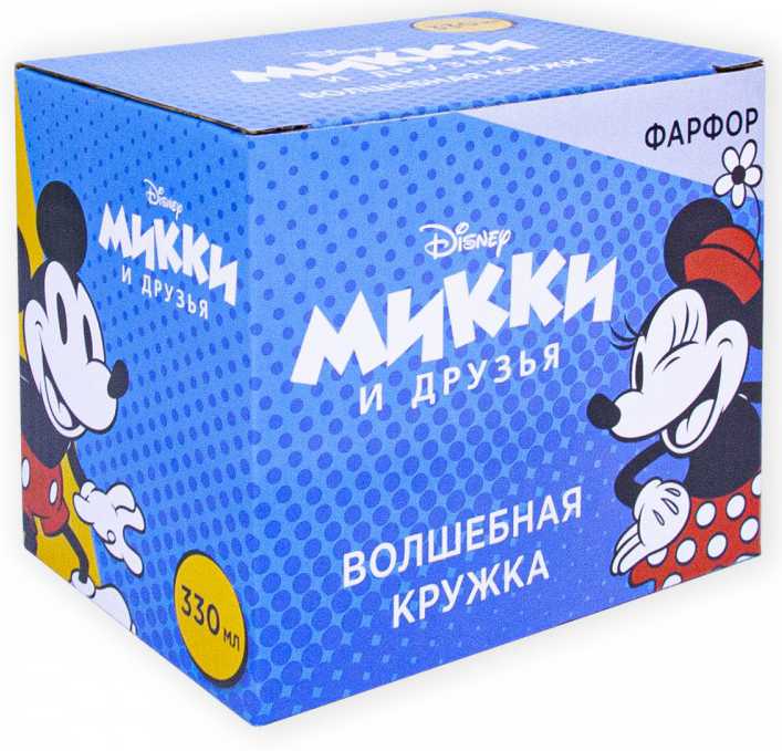 Оставить отзывТермокружка с изображением героев мультфильма Микки и Минни – с магическим эффектом, как и положено миру сказки от Дисней! Для того, чтобы кружка поменяла цвет – просто добавь горячей жидкости (рекомендуемая температура от 80 С). Картинка начинает проявляться буквально через пару секунд, а в течение минуты она проявится полностью. Когда кружка остынет, магия исчезнет вместе с проявившейся картинкой.
