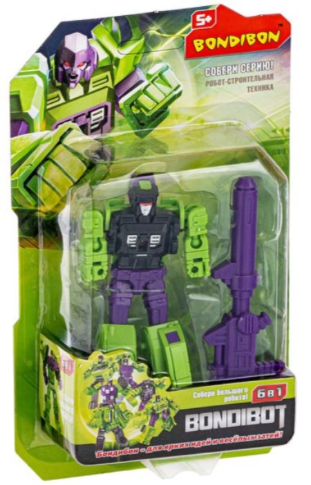 Чем порадовать маленького мальчика? Разумное решение робот – трансформер «Bondibot 2в1» – он покорил сердца всех мальчишек на планете! Проявив смекалку, ребенок сможет самостоятельно собирать и разбирать сколько угодно раз робота, превращая его в кран. В процессе игры ребенок развивает мелкую моторику, пространственное и образное мышление и тренирует воображение. Красочная упаковка с описанием механизма трансформации на листе с европодвесом.
