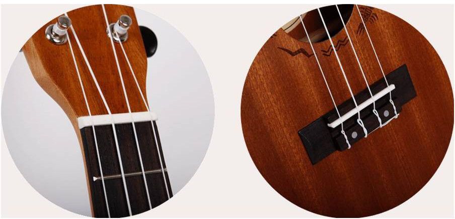 Ламинированная верхняя дека укулеле проста и неприхотлива в уходе, поэтому эта модель наиболее удачный вариант, если вы хотите приобрести инструмент для путешествий. Все укулеле комплектуются плотным качественным чехлом, удобным для путешествий.