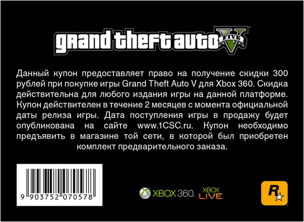 Внимание! Данный продукт не является игрой. Комплект предварительного заказа представляет собой купон на скидку 300 рублей, при последующей покупке самой игры, и приятные бонусы для поклонников GTA.