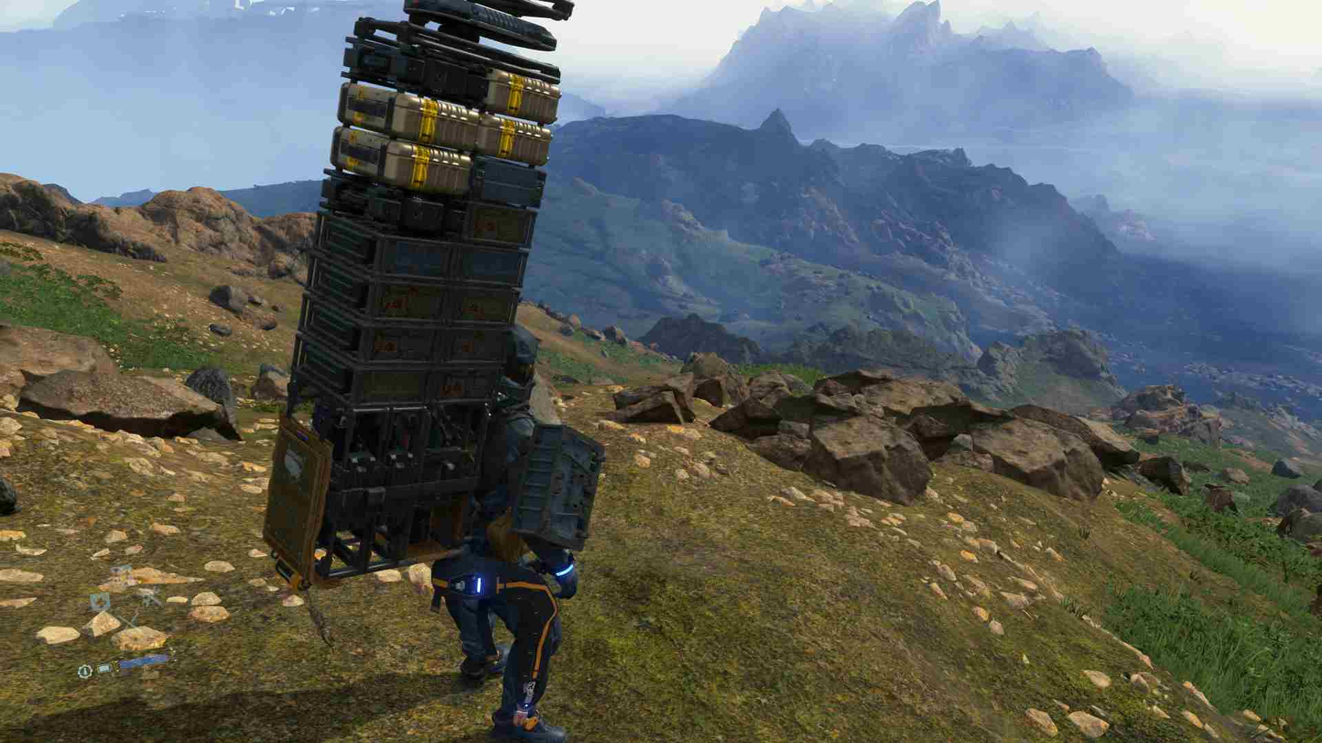 Появится транспорт: мотоциклы, грузовики, даже упомянутую выше платформу можно использовать как скейтборд Марти МакФлая из «Назад в будущее». Но с нее достаточно легко упасть, что грозит повреждением груза, поэтому «лучше не надо». Даже ходьба на своих двоих может оказаться небольшим испытанием. Главный герой может споткнуться о камень, соскользнуть вниз во время подъема на холм. С помощью курков R2 и L2 необходимо контролировать равновесие Сэма, т. к. высокую стопку грузов то и дело болтает из стороны в сторону. Чем больше вес груза, тем быстрее расходуется выносливость, не говоря уже о том, что даже у обуви здесь есть запас прочности. Периодически приходится её менять.