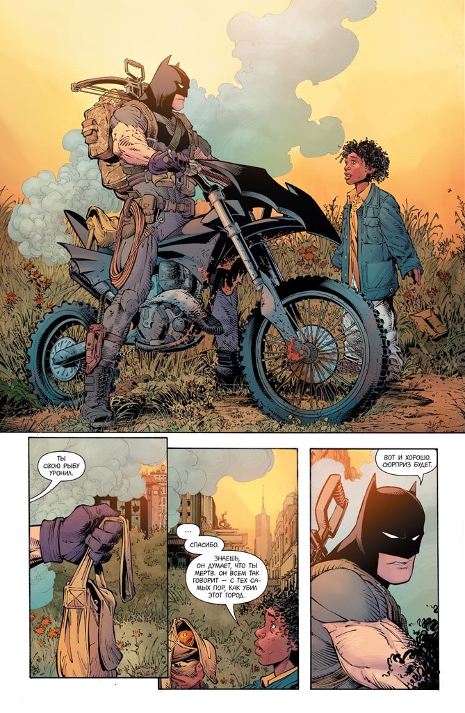 С этого места и начинается заключительная книга «Сверхтяжесть/Расцвет» , сюжетная линия которой вызвала больше всего споров среди поклонников Летучего Мыша. Место Бэтмена занял сбривший усы Джим Гордон в роботизированном костюме, который больше напоминал кролика, нежели механического Крестоносца В Маске. Но с подобным ребрендингом ещё можно было бы смириться, если бы Джим занялся отловом известных злодеев. Однако Снайдер предлагает совершенно нового персонажа, схватка с которым в финале напоминает дешёвую мангу о противостоянии кайдзю. При таком раскладе уже мало кто воспринимал попытки автора донести свое видение о предназначении Бэтмена. Когда два здоровенных монстра крушат в пылу битвы целые кварталы, уже не до размышлений о том, что же такое Готэм и какова ответственность каждого жителя перед своим домом.