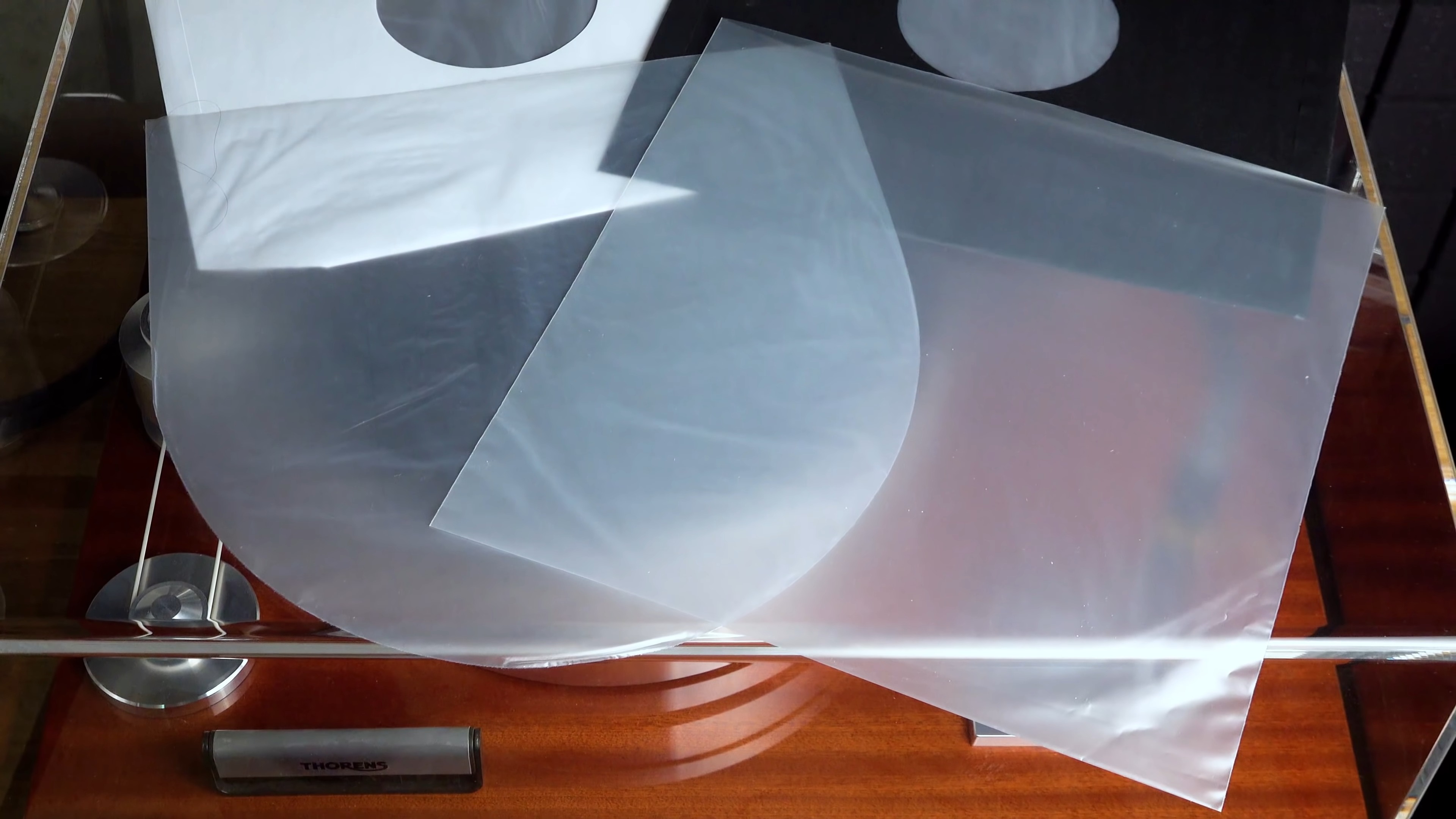 Покупая виниловую пластинку в новом состоянии, то есть – запечатанную, как минимум – есть смысл оставить родную пленку, к тому же на ней зачастую присутствуют стикеры, то есть – аккуратно открываем пластинку с одного торца, чтобы вынуть сам винил; однако, если конверт раскладной – не сняв пленку – вы просто не сможете заглянуть на разворот – на помощь приходят внешние пакетики для хранения пластинок, которые отличаются: плотностью, степенью прозрачност, ну и так делее… но, основных типов пакетиков всего два – с клапаном и без него: с клапаном – надежнее, особенно – если вас вдруг захотят затопить соседи, то больше шансов, что пластинки не пострадают – но они менее удобны, поскольку каждый раз приходится пакетик открывать; поэтому, на тот случай, если с соседями сверху вам повезло – можно обойтись обычными пакетиками – без клапанов, которые защитят конверты пластинок от потертостей и других повреждений.