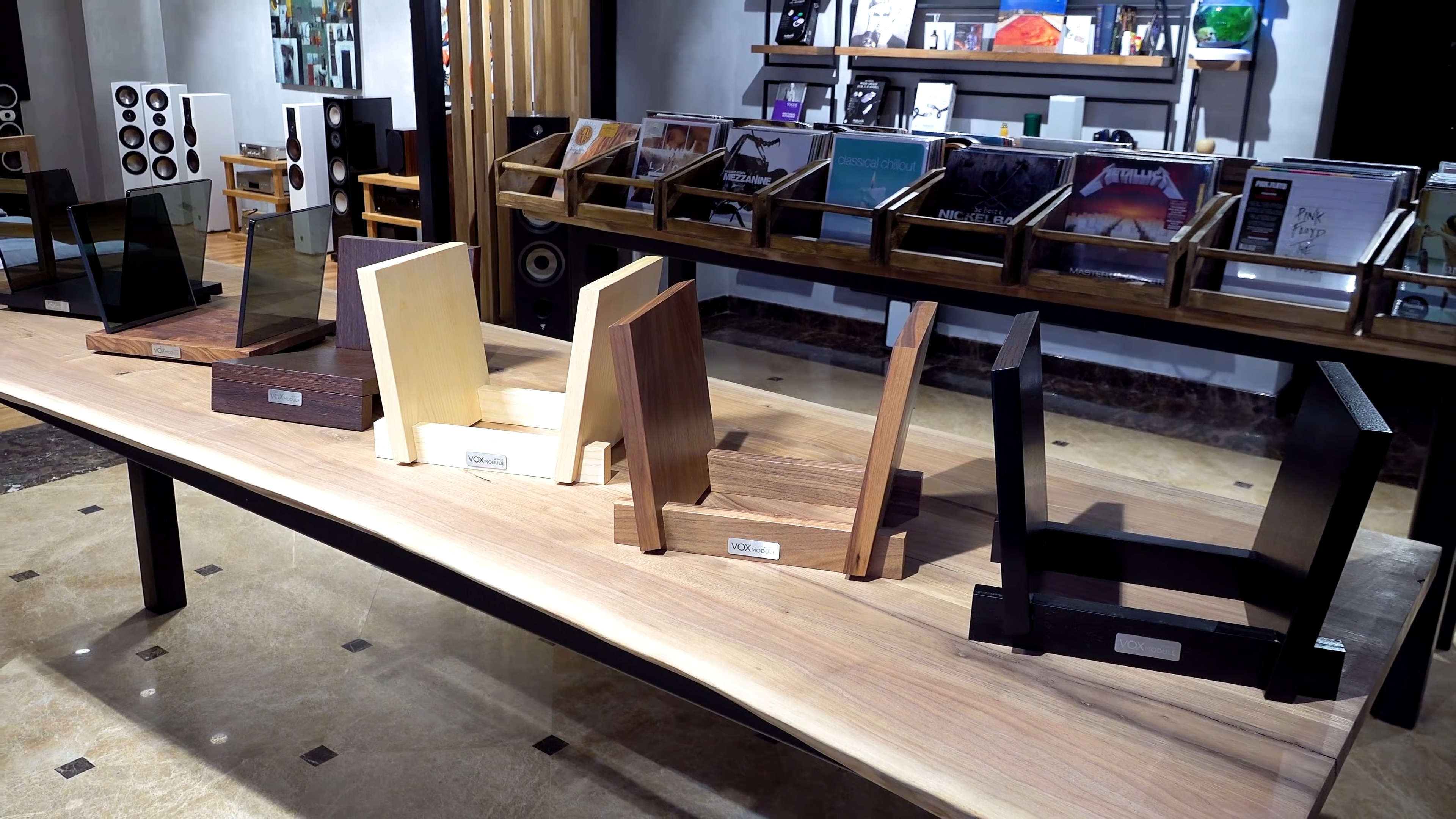Существует множество подставок и полок под пластинки – даже выпускаются ящики для них; можно вообще самому собрать стеллаж при желании – что в общем то я и сделал: здесь важно, – чтобы пластинки хранились только в вертикальном положении; при горизонтальном хранении – как вы не защищайте винил – повреждения конвертов неизбежны; впрочем и сам винил со временем деформируется – и даже приходит в негодность, поэтому – важнейшее правило – вертикальное хранение; да – небольшой наклон, в принципе, допускается – ничего страшного не произойдет. Так же – пластинки на ваших полках, стойках, стеллажах – не должны быть переуплотнены – то есть вы свободно должны их вынимать без особого усилия, если переуплотните – повредите конверты – как при вынимании, так и… появятся те самые круги от пластинок внутри конвертов.