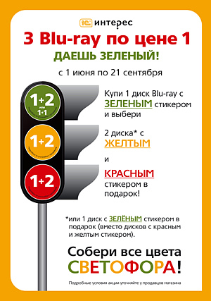В рамках данной акции, приобретая один диск Blu-ray с зеленым стикером, вы можете выбрать себе в подарок: