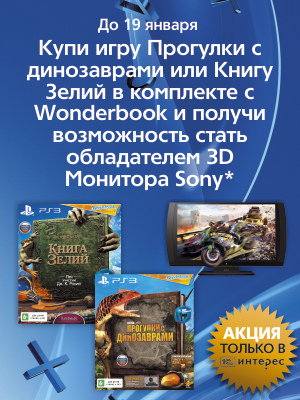 В рамках данной акции при покупке одного из двух комплектов Wonderbook, с Книгой зелий или с Прогулками с динозаврами с использованием Бонусной карты, вы получите шанс стать обладателем одного из пяти мониторов.