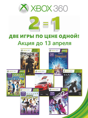 Акция завершенаТолько в «1С Интерес» с 24 марта по 13 апреля 2014 года включительно проходит акция «Две игры для Xbox 360 по цене одной!».