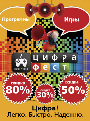 Десять дней, с 30 мая по 8 июня 2014 года включительно, в мультимедийной сети «1С Интерес» будет проходить фестиваль ЦифраФест, в рамках которого вы сможете купить электронные версии популярных игр и программ с существенными скидками.