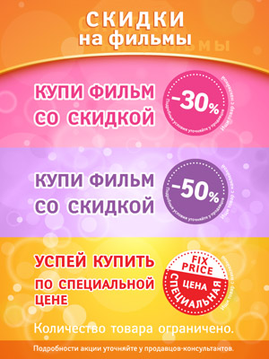 Покупайте в нашей сети до 30 января 2015 года фильмы и мультфильмы со скидкой 30%, а также по специальным сниженным ценам!