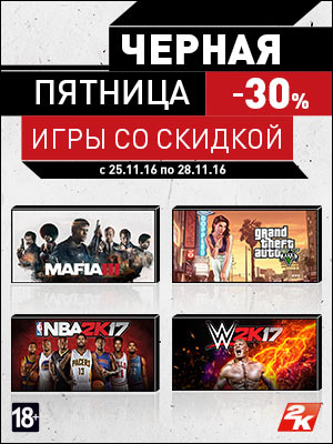 Акция завершенаС 25 по 28 ноября экономьте 30% на покупке таких игр, как Grand Theft Auto V, Mafia III, NBA 2K17 и WWE 2K17! Специальные цены от 2099 рублей!