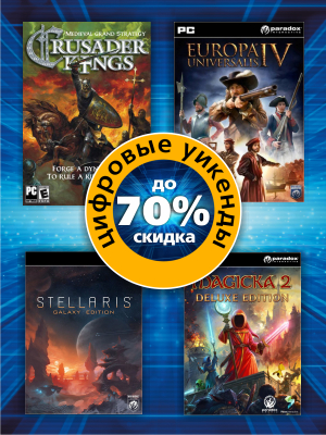 Акция завершенаС 25 по 28 ноября отмечаем Черную пятницу с избранными играми от Paradox Interactive, разработчика и издателя глобальных стратегий и ролевых игр, на которые будут действовать скидки до 70%!