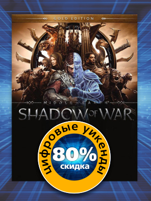 Акция завершенаС 6 по 30 сентября успейте купить золотое издание игры Средиземье: Тени войны по суперцене – 999 рублей! Помимо игры в издание вошли 2 дополнения «Возмездие племени Бойни», «Возмездие племени Преступников», а также 2 сюжетных дополнения «Клинок Галадриэль», «Пустоши Мордора» и Золотой сундук войны.