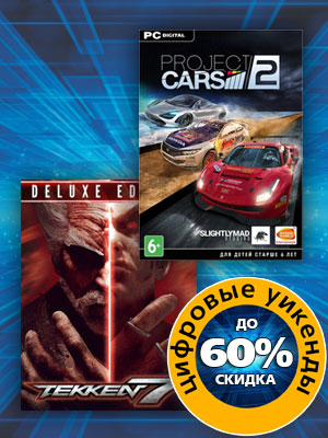 Акция завершенаЖелезный кулак или стальные кони? Всего 3 дня, с 28 по 30 сентября, на автосимулятор Project cars 2, в котором вас ждут захватывающие впечатления, прекрасные автомобили и невероятные трассы, а еще реалистичное управление, и файтинг Tekken 7, который предложит вам поучаствовать в красивейших сюжетных битвах и поединках, будут действовать скидки до 60%.