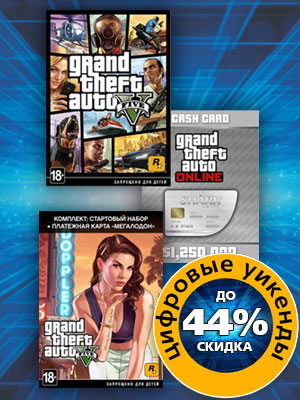 Скидки до 44% на игру Grand Theft Auto V – отдельно и в комплекте со стартовыми наборами «Преступная организация»