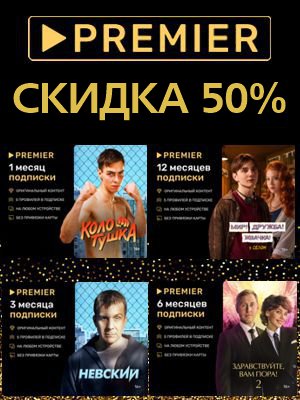 Подписки на 1, 3, 6 и 12 месяцев на видеосервис Premier со скидкой 50%