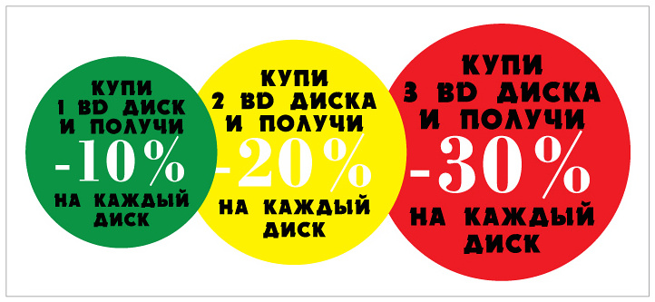 - При покупке 3-х и более дисков из списка, скидка – 30% на каждый диск
